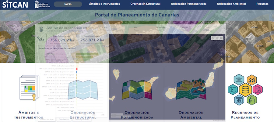 La Consejería de Política Territorial, Cohesión Territorial y Aguas del Gobierno de Canarias, a través de GRAFCAN, ha habilitado el Portal de Planeamiento de Canarias, que aglutina varios cuadros de mando y una serie de enlaces a diversos recursos sobre planeamiento de Canarias. Los cuadros de mando muestran datos y mapas de análisis territorial sobre la ordenación urbanística y ambiental contenida en la Base de Datos Geográfica de Planeamiento de Canarias (GeoBDP). El análisis de la ordenación del territorio requiere la interpretación y proceso de todos los instrumentos de planeamiento de manera homogénea, lo que se consigue gracias a un procedimiento de sistematización que normaliza sus determinaciones urbanísticas permitiendo su inclusión en la GeoBDP.